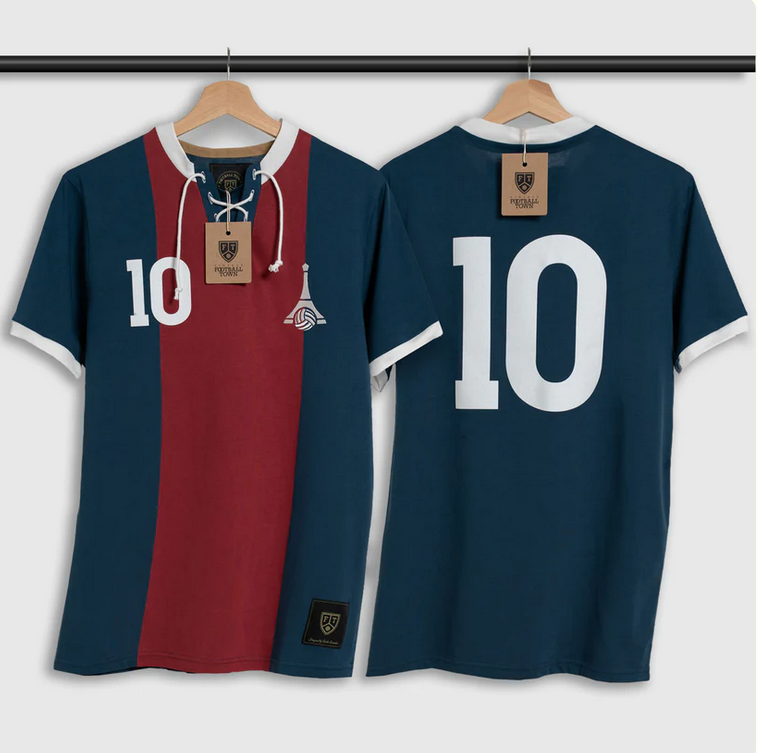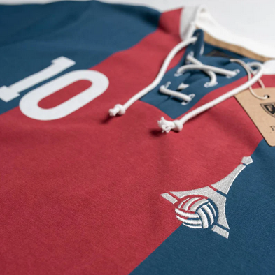 Cette pièce revisite l’esthétique parisienne avec un design affirmé mais raffiné. Une référence subtile à l’identité du club de la capitale et à ce numéro chargé d’histoire.
